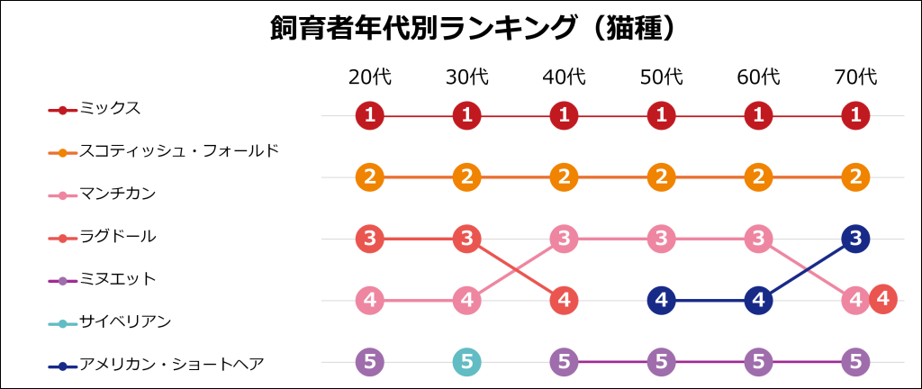 猫種では、トップ2は全年代同様で、3位以降は年代で動きのある結果となりました。